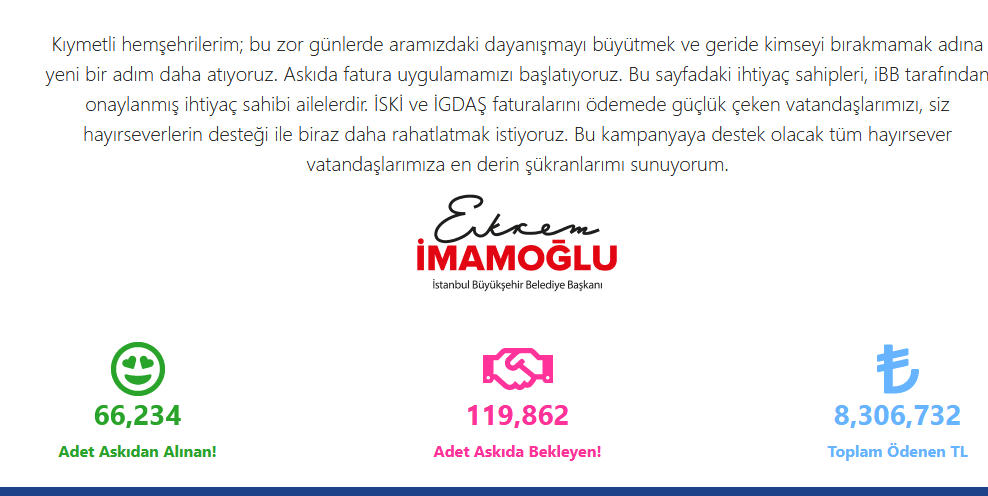 Mansur Yavaş’ın Bir İftar da Benden Kampanyasının Ardından İmamoğlu Askıda Fatura Uygulamasını Başlattı.