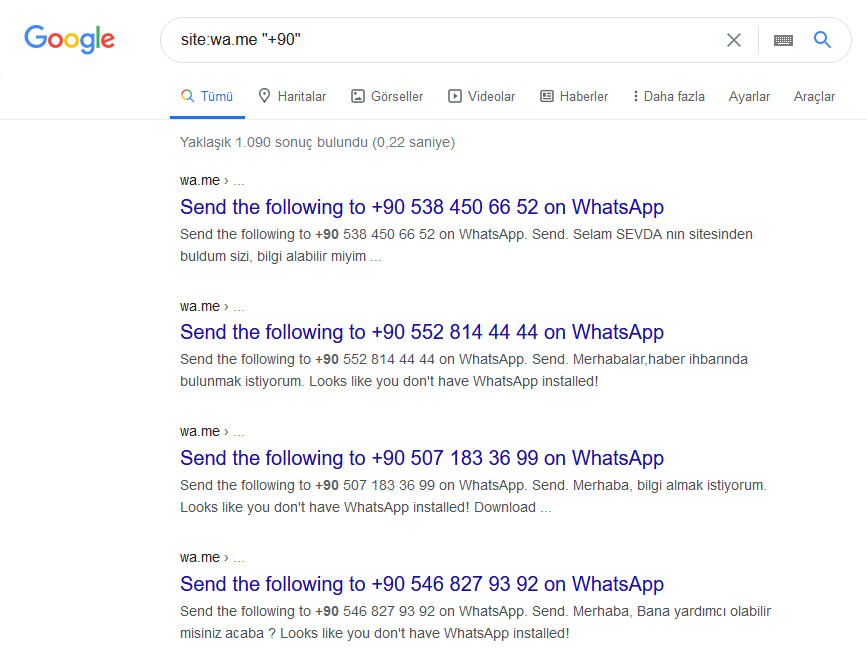 Whatsapp Numaraları Google Aramalarında Gözüküyor :