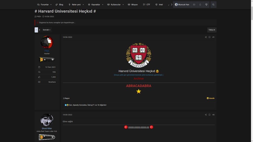 Türkiyenin en büyük siber güvenlik forumlarından biri olan Türk Hack Team gövde gösterisine bakınca ne görüyorsunuz